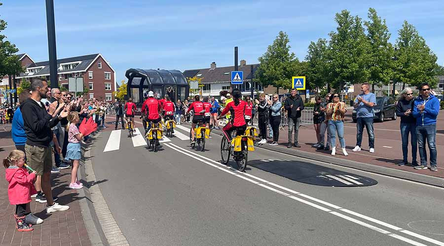 De doorkomst van de Roparun in Barendrecht is maandag ogeopend om 10.50 uur. De eerste teams stonden te trappelen om van start te gaan. Zij stonden namelijk al bijna 30 minuten te wachten. Teams 33, 34, 127 en 153 zijn als eerst door Barendrecht gegaan. De wethouders Margo Stolk en Lennart van der Linden stonden klaar om de deelnemers te ondersteunen. Ook waren er verschillende raadsleden.