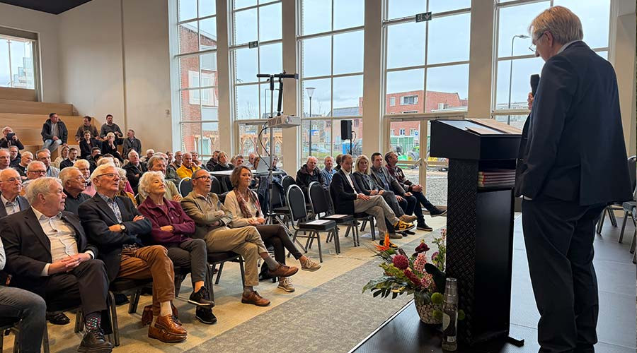 ''En hoe bijzonder is het dat vandaag enkele mensen aanwezig zijn die destijds zelf bij het ontstaan van dit gebouw betrokken waren of hier later werkzaam waren. Inmiddels op respectabele leeftijd, maar nog altijd hier. Daarmee is de geschiedenis van dit gebouw vandaag niet alleen zichtbaar in stenen, maar ook in mensen. Dat maakt deze bijeenkomst niet alleen een moment van terugkijken, maar ook van levende geschiedenis.